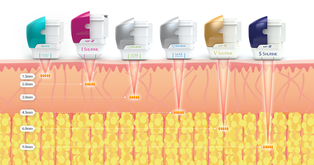 將能量選擇性地傳遞至深層皮膚的真皮層及SMAS層,