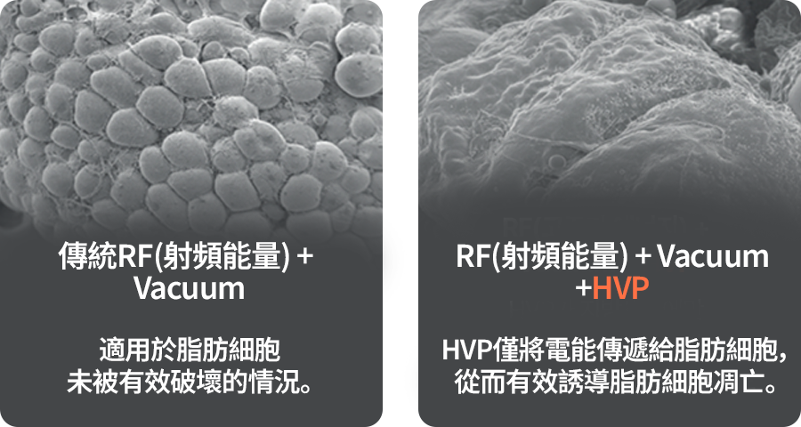 將射頻(RF)能量及高電壓刺激(HVP)傳遞至皮下脂肪層,