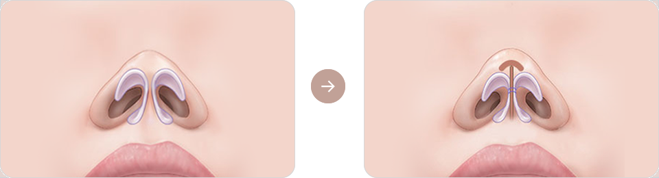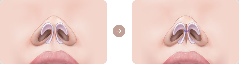 此手術將兩側外展的鼻翼軟骨收集起來,